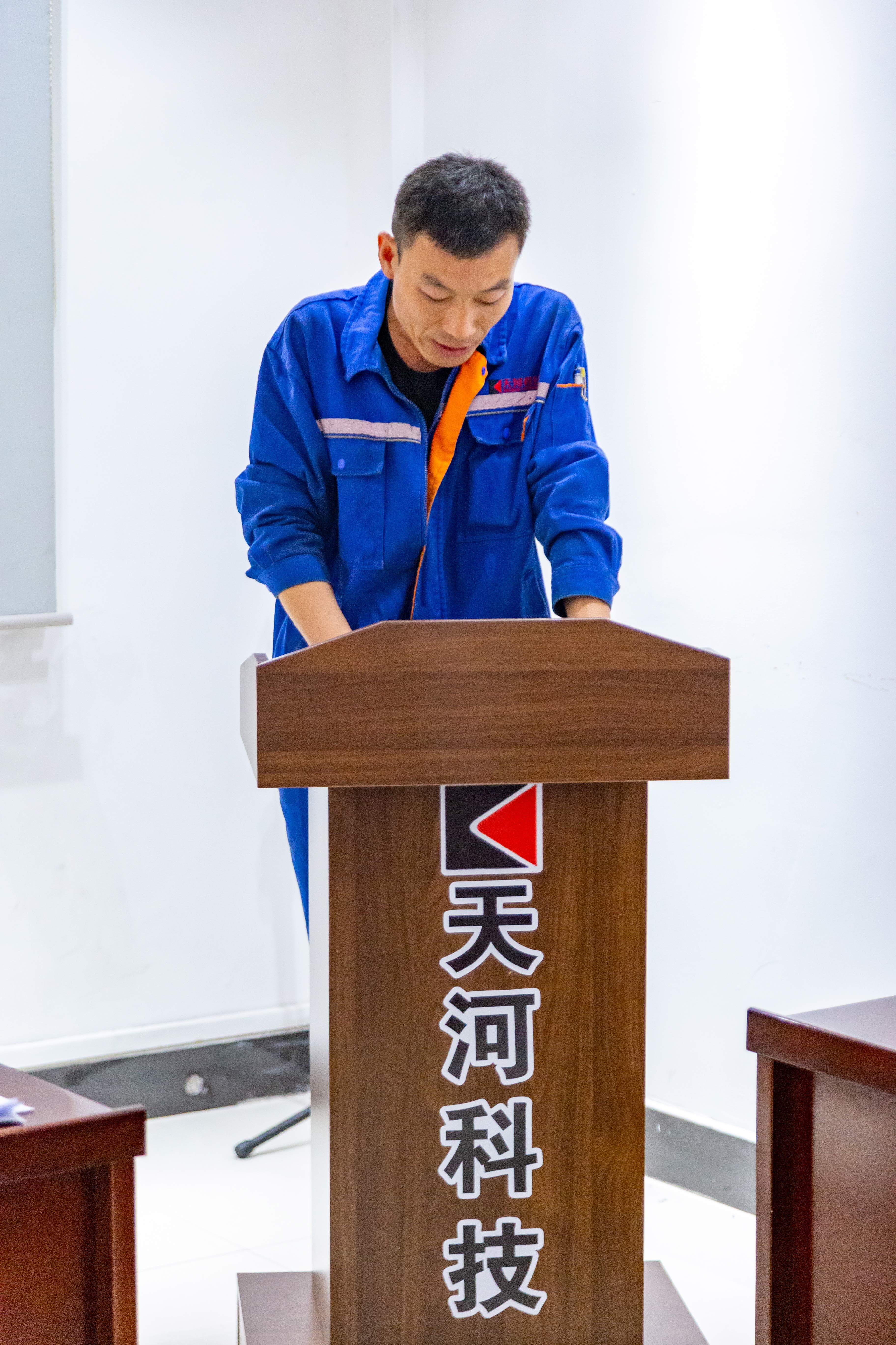 公司员工张龙代表选手发言,比赛中一定严格按照比赛要求,认真对待比赛,严格遵守比赛规则,尊重评委,赛出成绩,赛出水平,赛出风格,提高专业技能水平。